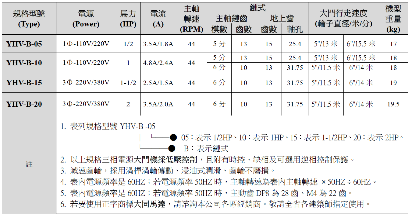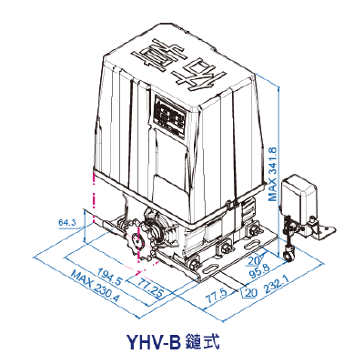 YHV-B型立式大門機尺寸圖 (單位 : mm)