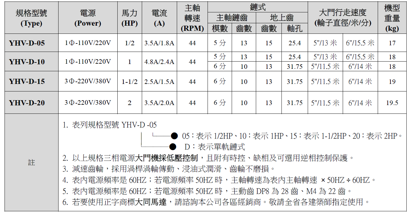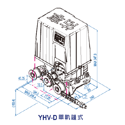 YHV-D型立式大門機尺寸圖 (單位 : mm)